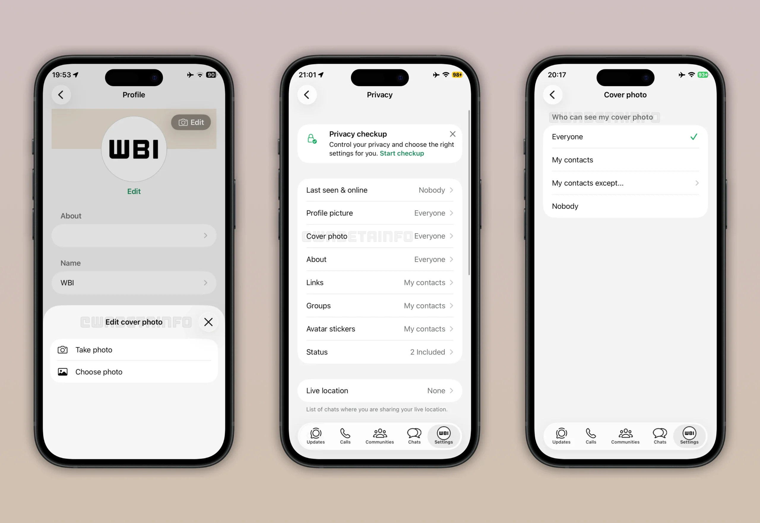 A interface de edição da capa é acessada por meio de um ícone em formato de lápis no canto inferior da tela, garantindo que o usuário possa alterar ou remover a imagem a qualquer momento. Um aspecto fundamental da atualização é o controle de privacidade, permitindo configurar se a imagem será pública ou visível apenas para contatos salvos. Essa flexibilidade é estratégica, visto que fotos públicas podem ser exploradas por estelionatários para a aplicação de golpes ou utilizadas indevidamente em contextos de inteligência artificial.